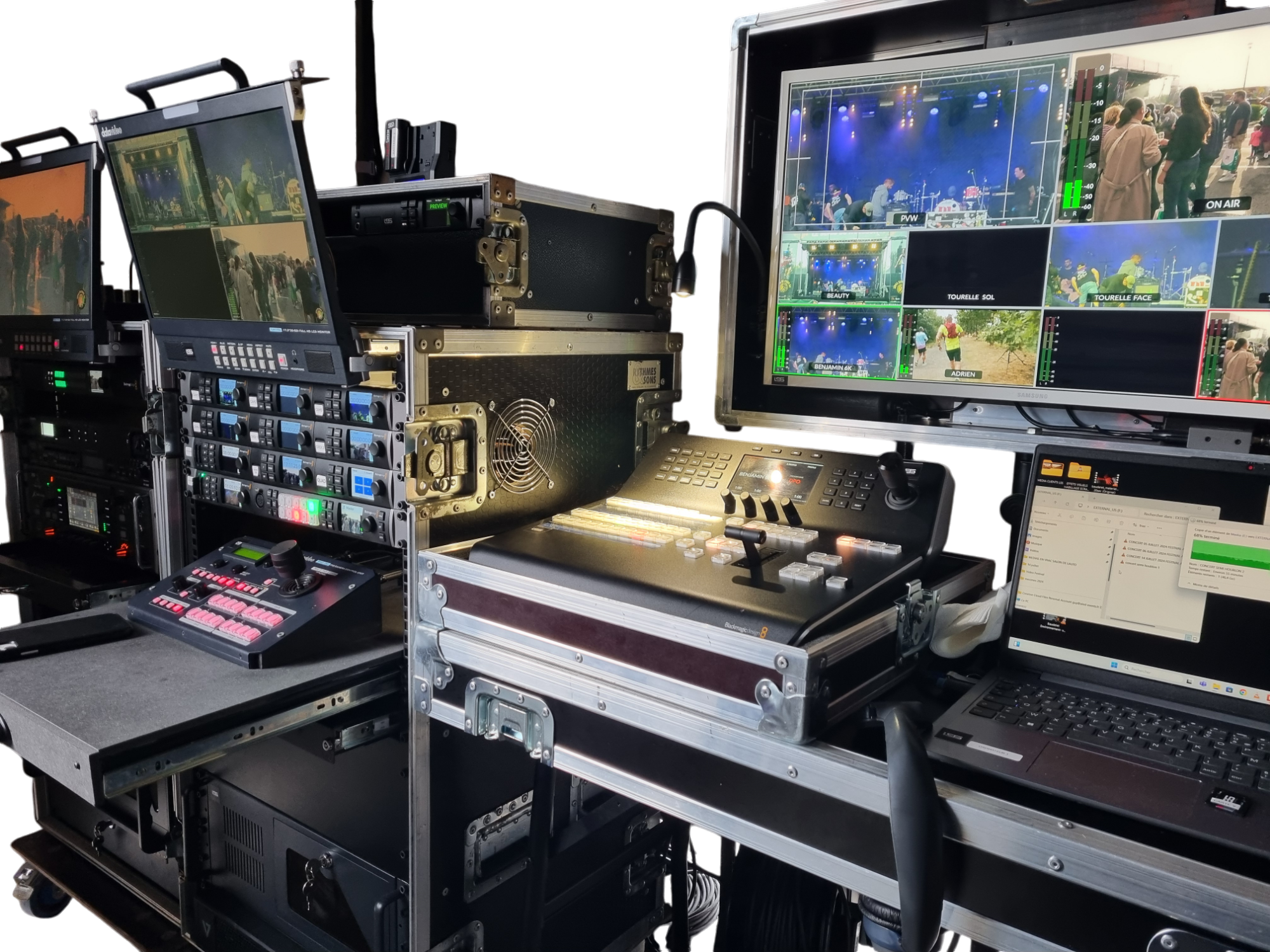 Afin de répondre à tous vos besoins de prise d’images sur vos événements nous avons conçu trois régies vidéo, PLUG AND PLAY, ergonomiques et rapides à installer, capable de répondre à toutes vos demandes.Un régie tourelles, une régie SDI HD, une régie 4K. Ces régies sont autonomes et peuvent répondre à vos besoins de captation en live de une à 9 caméras.