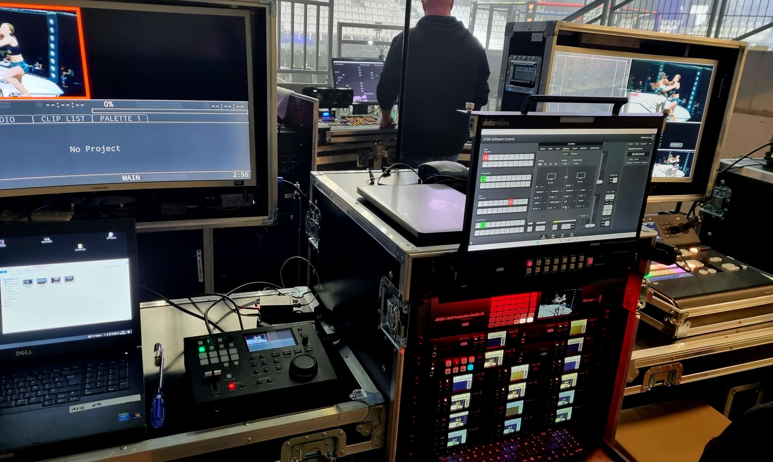 4 écrans LD en pitch de 3,9 mm , de 4m x 2,50 m seront installés sur la structure à 7,50 m de hauteur et permettront de diffuser les différents supports vidéo, présentation des sponsors et partenaires, présentation des combattants, rediffusion en live des captations télés lorsqu’elles existent.